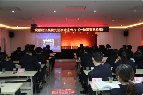 会议还组织全体检察人员观看了政法英模先进事迹宣传片《一抹深蓝艳检花》。